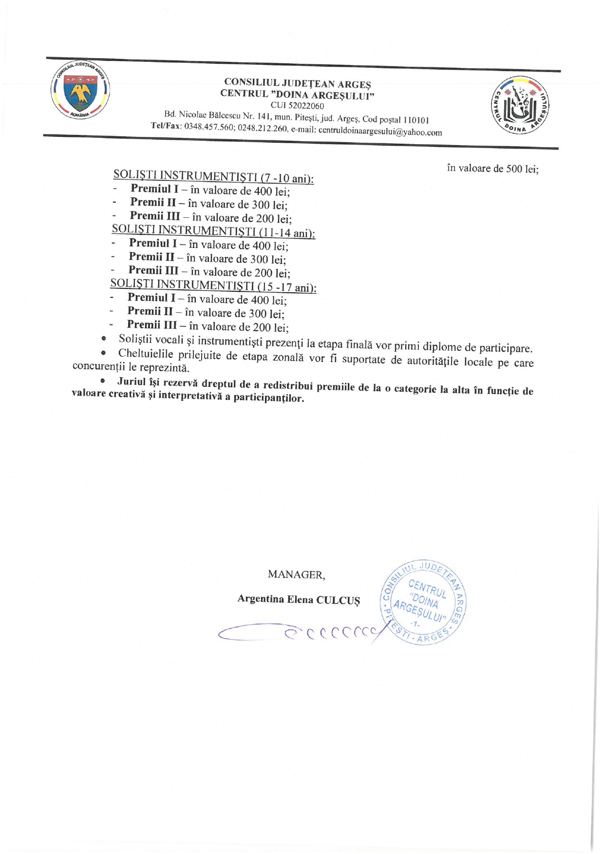 Regulamentul conține toate informațiile privind condițiile de participare, categoriile de concurs și criteriile de jurizare.